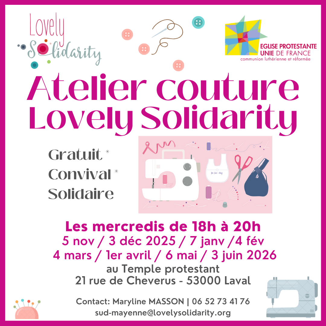Depuis 3 ans, notre église est en partenariat avec l’association LOVELY SOLIDARITY pour la fabrication de jolis sacs en tissu.